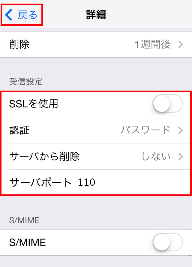 メールサービス > メールソフト設定 TOP > iOS7(POP)