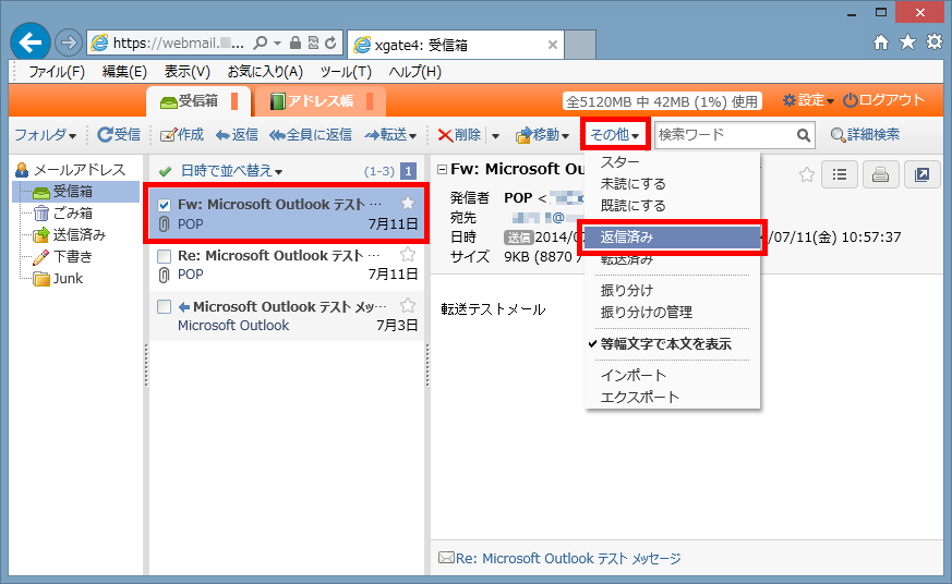 メールサービス > ウェブメールの操作手順 TOP > メールを整理する
