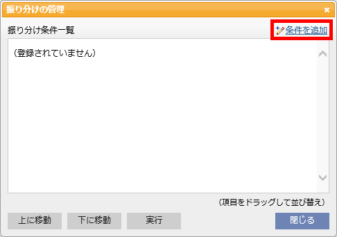 優先順位を上げるには、振り分けの管理画面で、条件を選択し、「上に移動」をクリックします。