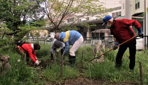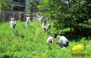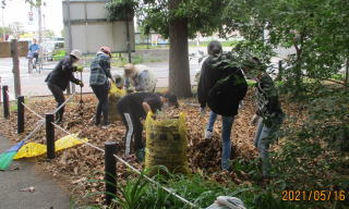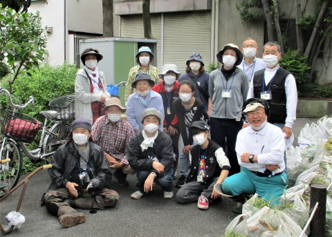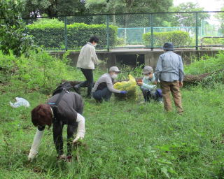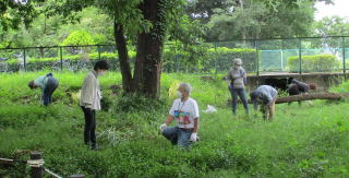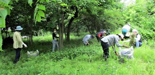 令和4年5月15日(日)…これまで有志が整備してきた草や葉、土などを回収しました。また、この時期になると全域に増殖する「ハルジオン」(キク科の外来種で駆除対象)を全員で抜き取りました。次回は6月19日(日)の予定です。