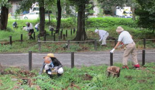 ●ヒガンバナの株分けの継続 ●ホウチャクソウ周りの整備 ●はびこってきたクズの抜き取り