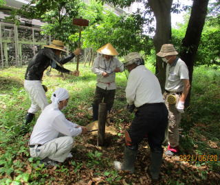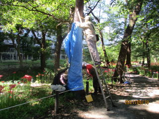 ●スズメバチ対策→樹木の一部をシートで覆いました ●カンゾウの移植