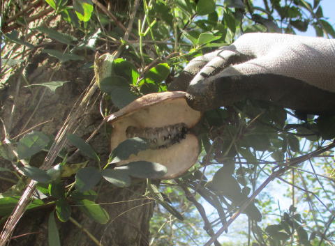 近隣の方がドングリを拾い集め金槌で