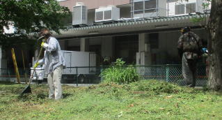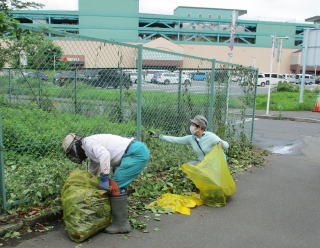 西側の草取りとゴミ拾いです |