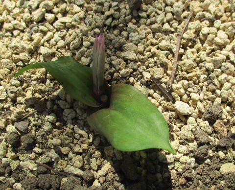 令和3年(2021年)2月28日(日) 西側のプランター内で育成していたカタクリが咲き出したので、近隣有志に声をかけ