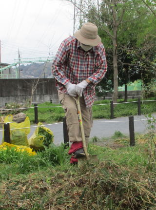 令和2年(2020年)11月15日(日)、全体のごみ拾いと、前回に引き続き東側入り口を中心にヒガンバナの株分けを