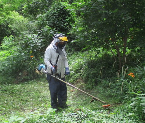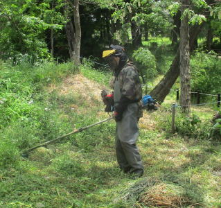 ▶メンバーのS氏が除草活動を開始しました。数日かけてほぼ全域をカバーし、行政が本格的に実施する8月まで不定期で